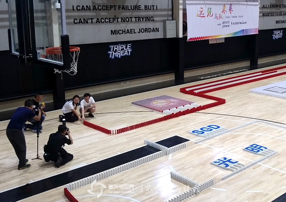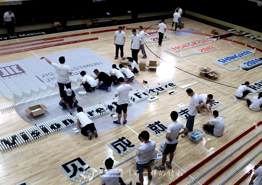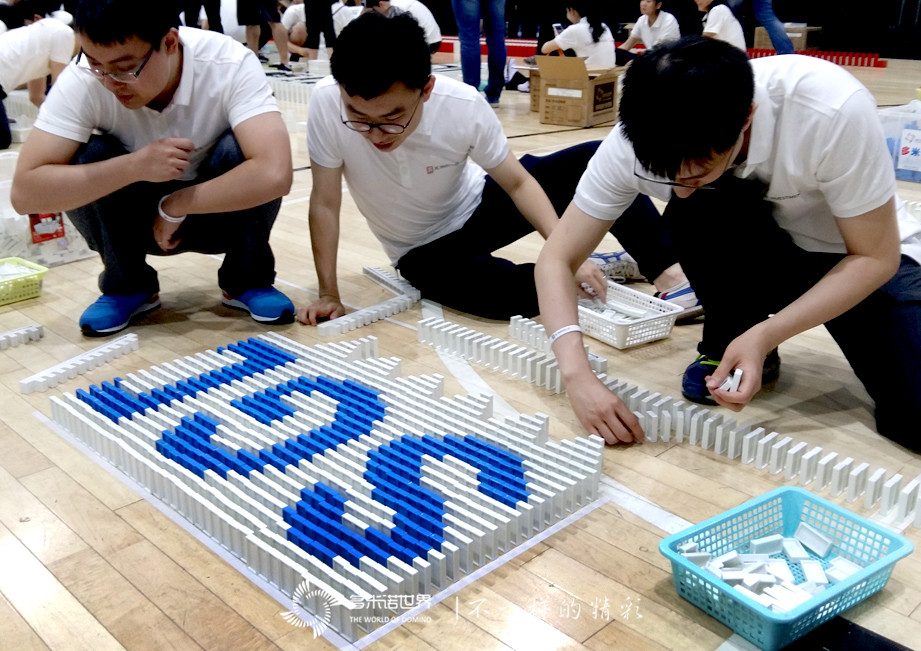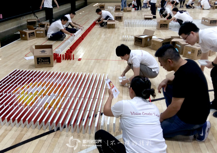 豐富的內容,不但使用了不同規格的骨牌,也要運用不同的骨牌碼放方法完成,對于頭一次參與多米諾活動的隊員們來說還是有不小的難度。雖然過程中時有意外倒牌的情況發生,但大家卻沒有被困難嚇倒,越戰越勇,很快就完成了所有的骨牌碼放任務。