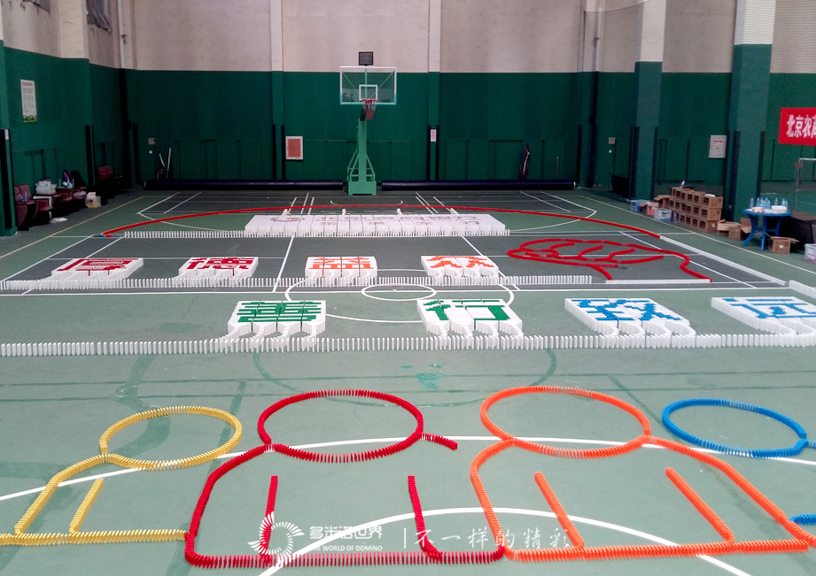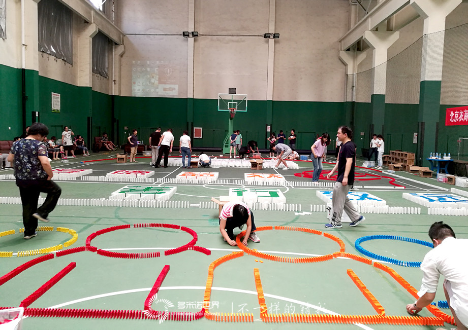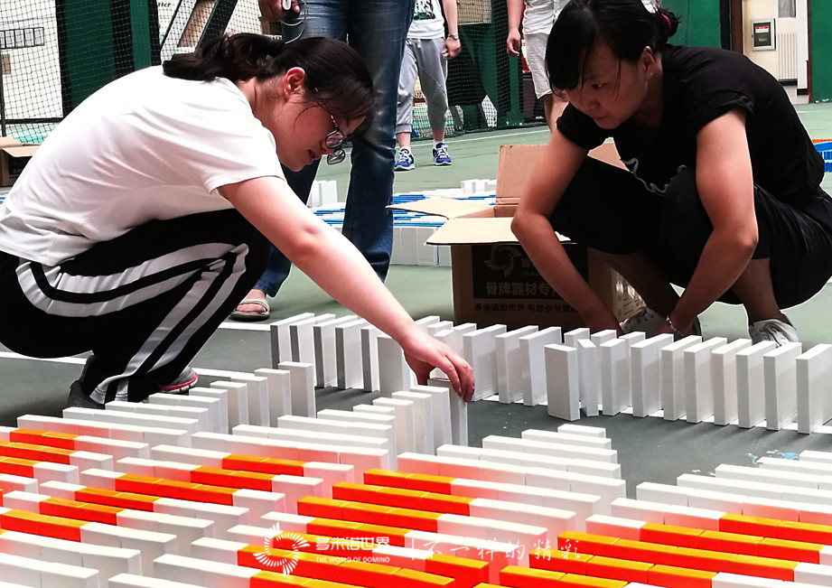 隊員們在各自隊長的帶領下,認真碼放著每一枚多米諾骨牌,不懼失敗,不畏困難,雖然現場時有意外倒牌發生,卻沒有打倒隊員們的自信,在所有隊員的共同努力下,所有骨牌被成功碼放。