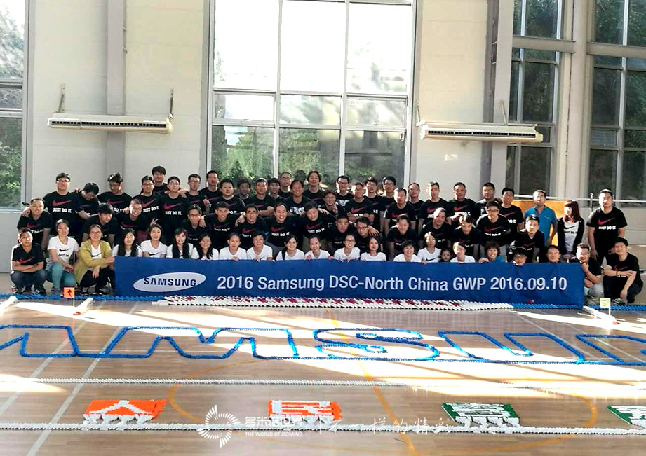 2016年9月10日,三星-半導體的七十位伙伴,在多米諾世界團隊老師的引領下,向多米諾運動發起挑戰。