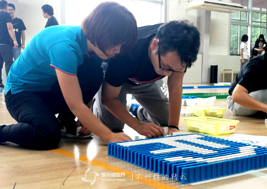 雖然大家都是第一次參與多米諾活動,團隊又來自中韓兩國,但并沒有被骨牌碼放技巧不夠嫻熟,大家語言溝通有障礙所干擾,而是共同奮斗、面對挑戰,最終提前完成所有任務,所有骨牌畫面完美呈現。