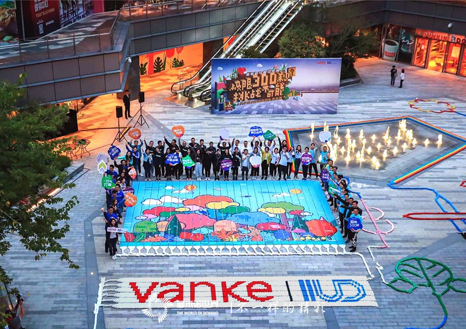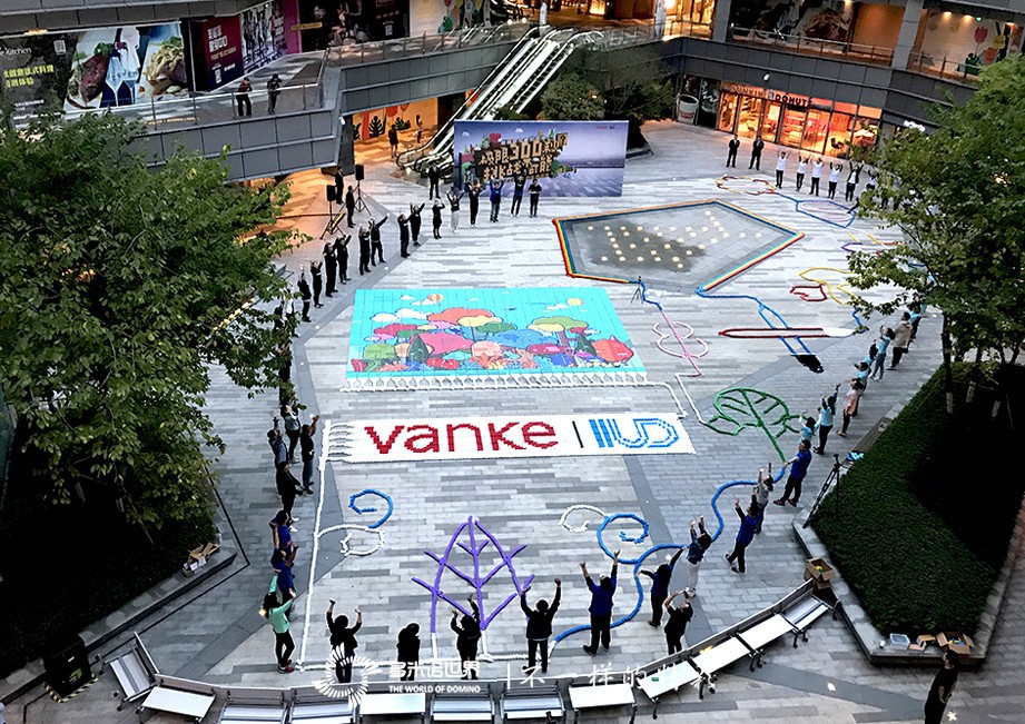 團隊大挑戰和創意大挑戰是壓軸項目,所有隊員要共同碼放完成一幅多米諾畫卷。畫卷中有熱帶雨林圖案,有萬科產城LOGO畫面,還有各隊的創意設計;大家既要嚴格按照技術要求碼放骨牌,又要發揮想象、進行創意設計,還要與秋風戰斗到底。過程中,骨牌不敵秋風,一片片被吹倒;隊員不懼秋風,一次次從頭再來;最終隊員們戰勝了秋風,完成了所有骨牌碼放。
