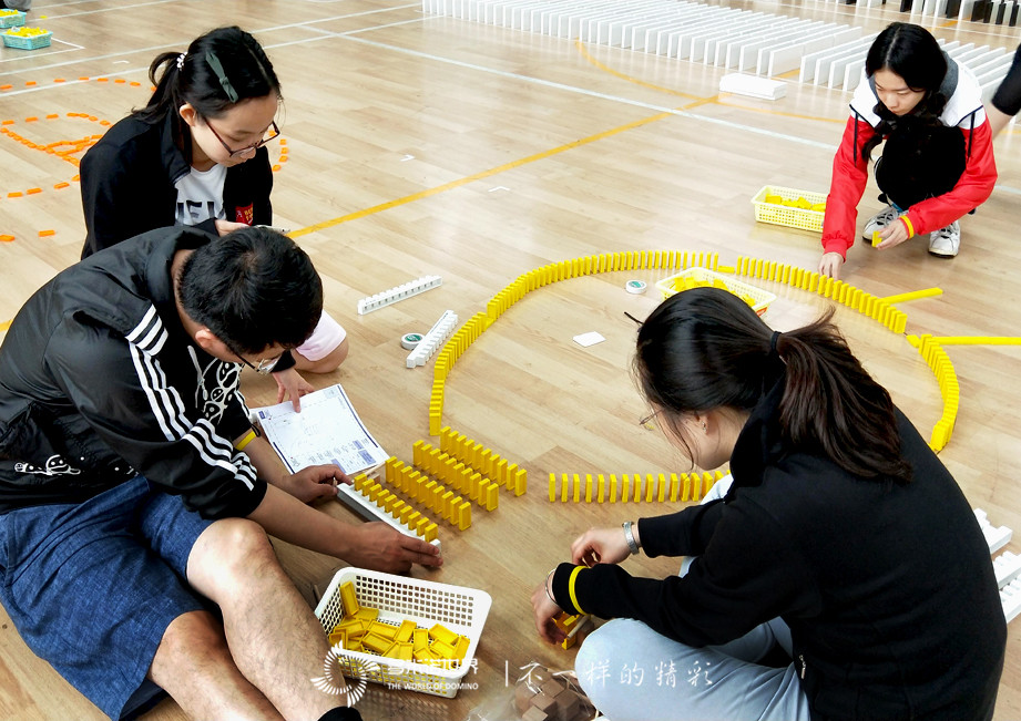 在骨牌碼放的過程中,“嘩啦啦……”的意外倒牌聲也開始在現場的各個角落頻頻出現。意外倒牌的增多,讓隊員們收起了剛看到意外發生時的好奇心與不在意,認真地面對每一枚骨牌,在一次次的從頭再來中,磨練了意志,也更加理解了“做到≠做好”的真正含義。