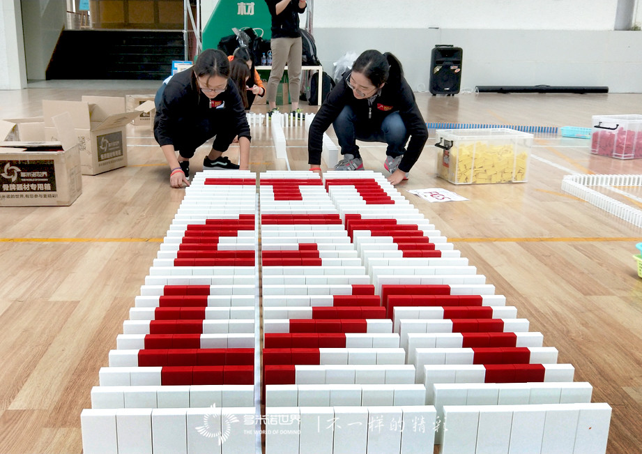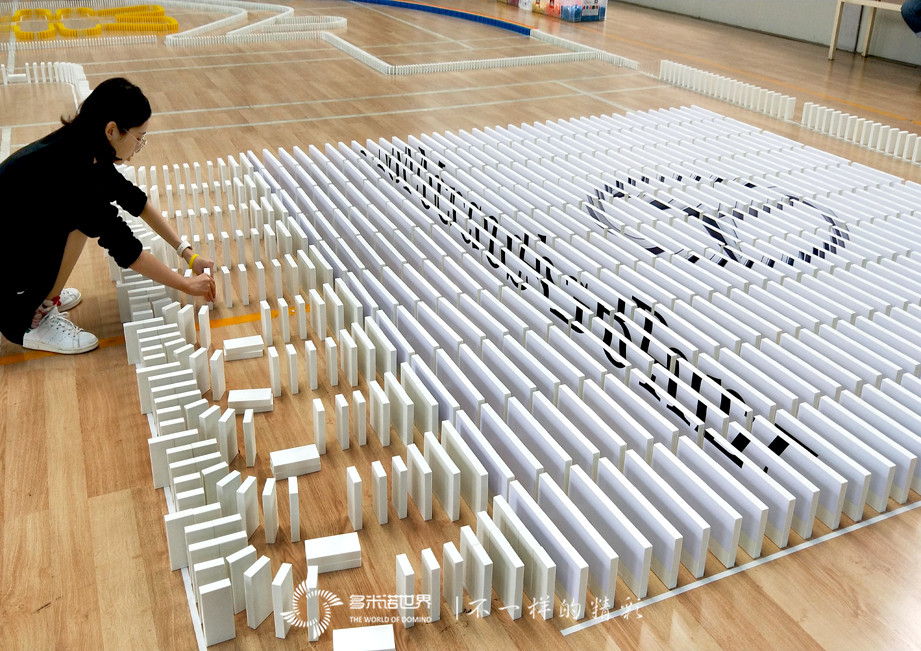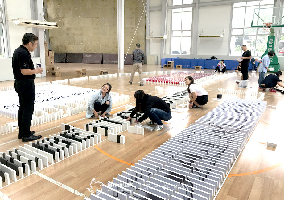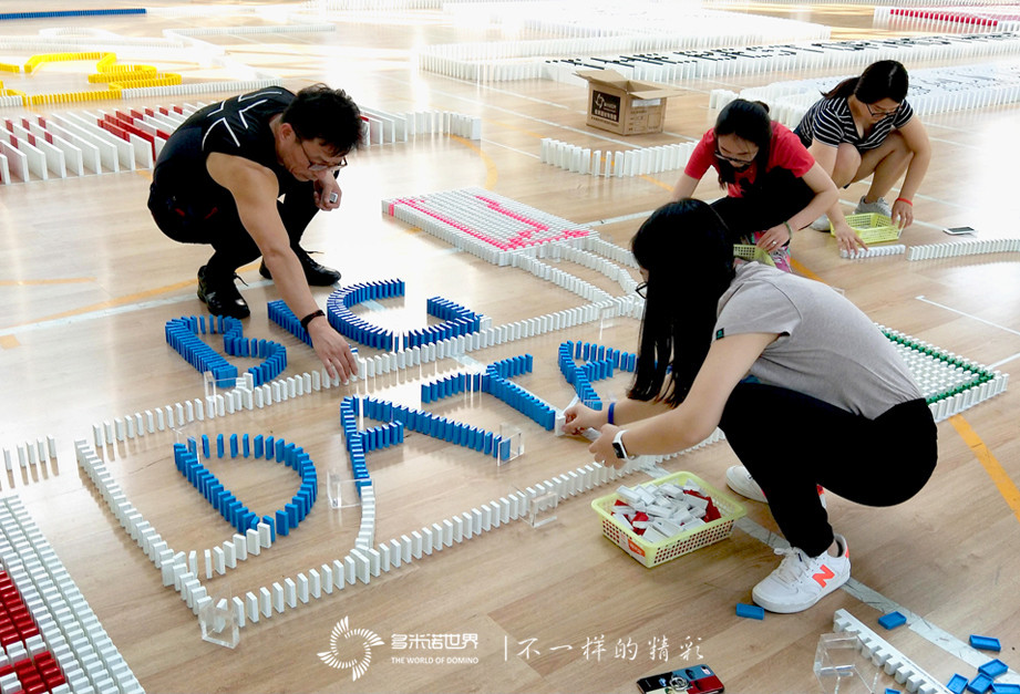 與此同時,多米諾創意區的隊員們,為了設計方案絞盡腦汁,把文字變成生動的多米諾圖案,既要主題明確,又要圖案美觀,還要用骨牌碼放、呈現,對于第一次參與多米諾活動的隊員們來說實則不易。最終,團隊力量戰勝了經驗不足,四幅各具特色的創意多米諾圖案紛紛展現在大家面前。