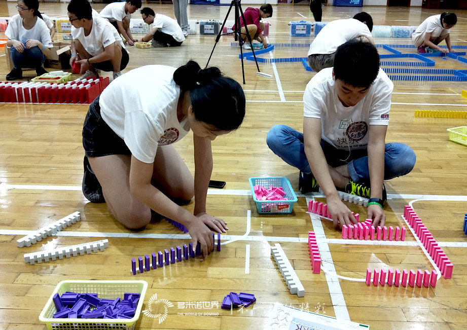 多米諾講師耐心的講解了活動的規則和碼放技術,隊員們便信心滿滿的進入狀態。隊員們從開始碼放骨牌時的躍躍欲試,到沉下心來的靜氣凝神,開始變得內斂、沉穩;而面對一次次的意外倒牌,也從一開始的沮喪、無奈,直至不懼失敗、斗志昂揚。