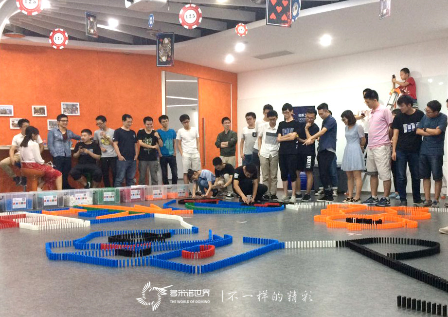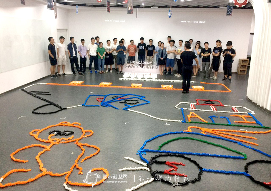 多米諾骨牌很多人都沒嘗試過,所有學員認真聆聽多米諾世界專業老師講解,很快便掌握了骨牌的創意碼放方法,并進入活動區域共同完成挑戰任務。多米諾老師將現場隊員分成了5個小組,每個小組完成一個本次學習項目的創意設計碼放,5個小時還要共同完成訓練營的主題畫面和“深度學習營”文字碼放,通過這幅多米諾畫面,展現學習營的主題和學習內容。