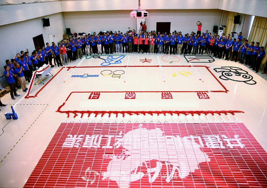 2017年7月16日,紅旗渠干部學(xué)院內(nèi),參加中化農(nóng)業(yè)2017年中工作會議的100余位高管,在認(rèn)真學(xué)習(xí)了紅旗渠的“艱苦奮斗”精神后,通過半天的時間,在多米諾的世界,使用骨牌和樂高,體驗了共建中化農(nóng)業(yè)紅旗渠大MAP的全過程。