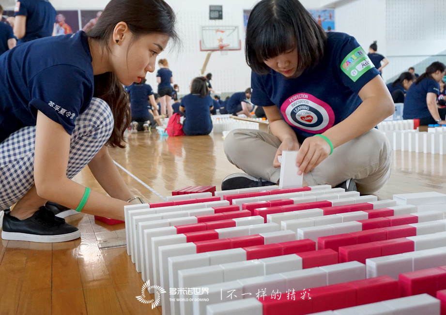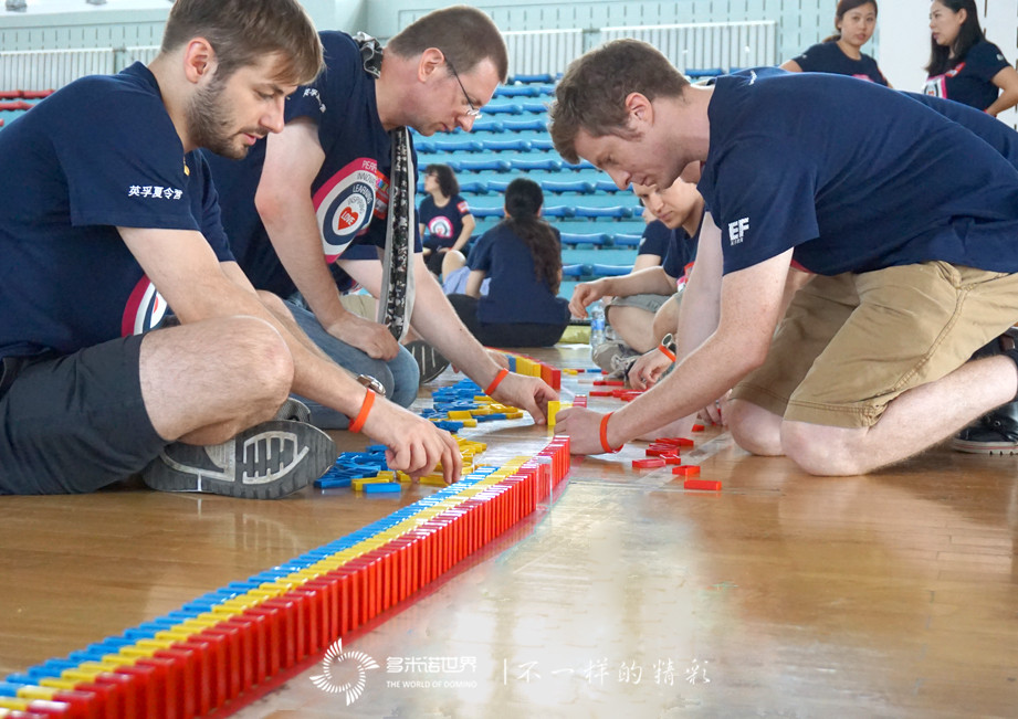 學員們半數(shù)以上是英孚的外教老師,雖然大家來自不同的國家,說著不同的語言,但同樣的熱情,同樣的認真細致,面對意外時同樣的包容。在多米諾的世界里,大家樹立了統(tǒng)一的目標,付諸了行動的力量,全身心的體驗巔峰挑戰(zhàn),在感受心靈的碰撞的過程中,永不放棄、堅持到底,共同為視覺盛宴的到來而努力。