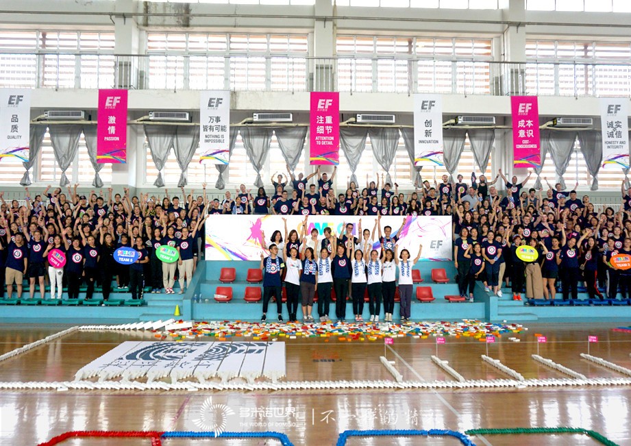 2017年7月5日,天津英孚教育的小伙伴們,集結(jié)在102中學體育館,在多米諾世界團隊的引領下,進行了一場比炎炎烈日更加讓人沸騰的多米諾團隊大挑戰(zhàn)。參與此次活動的,是英國,美國,加拿大,澳大利亞,南非,愛爾蘭,新西蘭和中國,8個國家的近300位小伙伴組成的英孚團隊;歷時6.5小時,共同碼放完成近60000枚骨牌,不僅需要團結(jié)協(xié)作、默契配合,還需要執(zhí)著、永不放棄的精神。
