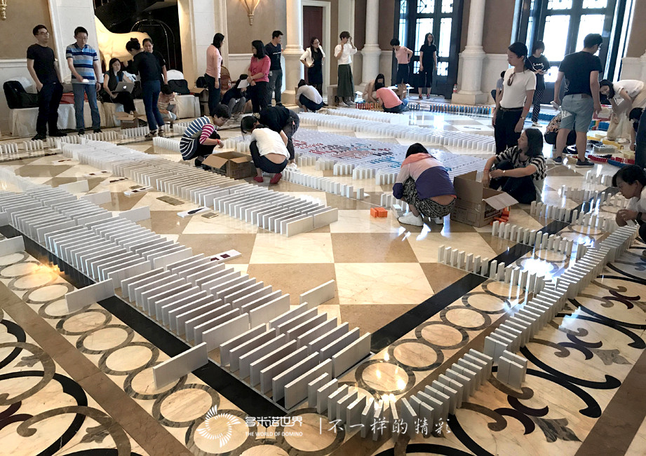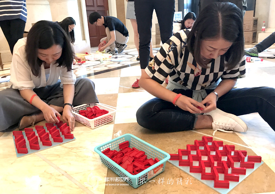 短暫的三個(gè)半小時(shí),既要感受多米諾游戲帶來的極限挑戰(zhàn),還要學(xué)習(xí)骨牌碼放技巧,共同碼放16000余枚骨牌組成的多米諾畫卷,隊(duì)員們在有限的時(shí)間內(nèi)全神貫注,爭分奪秒,向目標(biāo)發(fā)起挑戰(zhàn)。