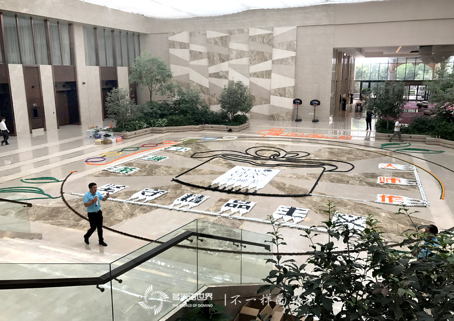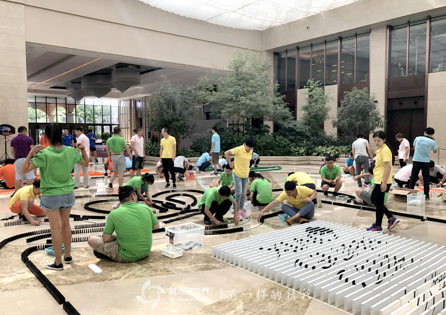 活動現(xiàn)場,認(rèn)真聆聽了多米諾團(tuán)隊(duì)老師的技術(shù)培訓(xùn)的隊(duì)員們,在各自的任務(wù)區(qū)域進(jìn)行細(xì)致的骨牌碼放。身著不同顏色服裝的隊(duì)員,在活動現(xiàn)場就像流動的彩虹一樣移動穿梭,很快,一幅幅骨牌圖案便豎立在場地中。