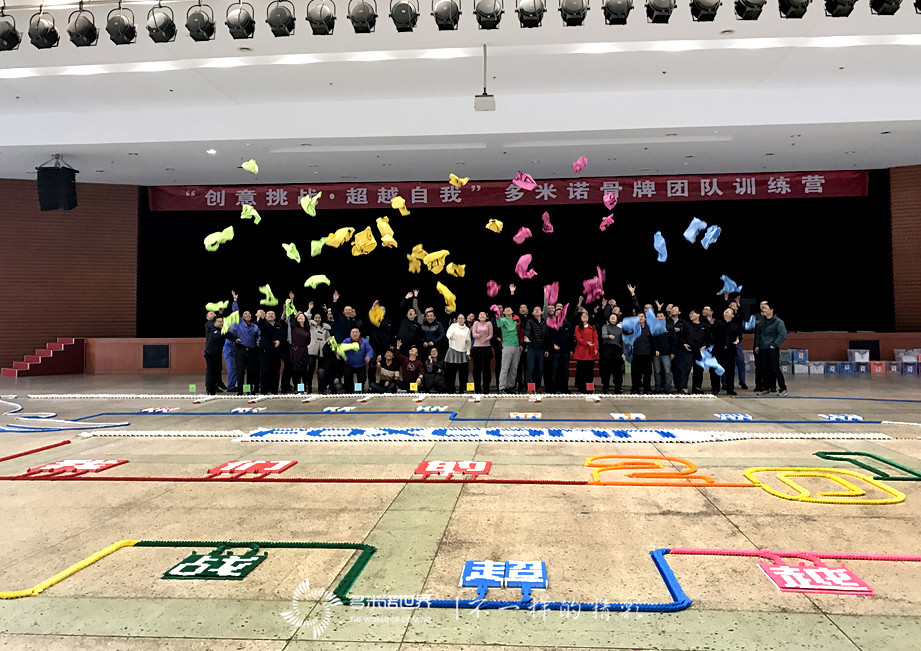 一幅幅碼放整齊的骨牌畫面,一個個個性鮮明的多米諾創意圖案,最終完成碼放、成功呈現,學員們用歡呼表達心中的喜悅,疲憊一掃而光,現場頓時成為一片歡樂的海洋。