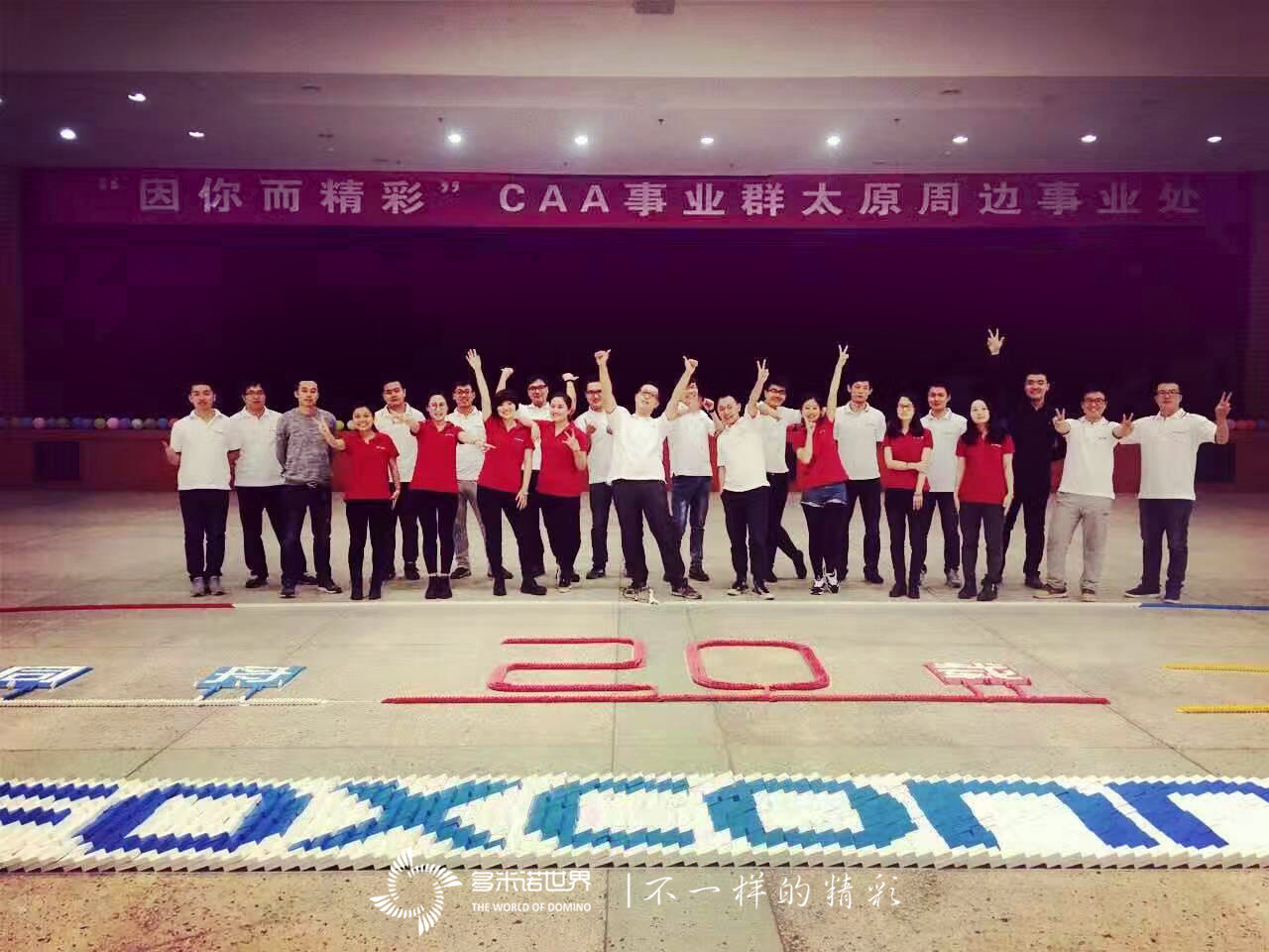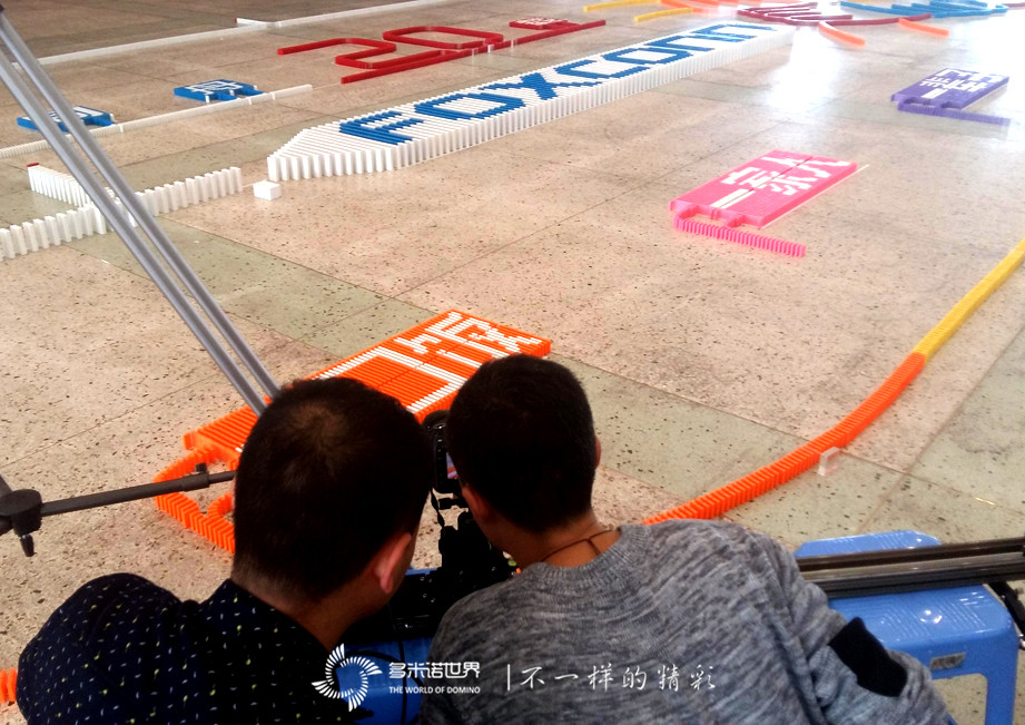 2016年11月27日,富士康CAA事業群太原周邊事業處,拍攝了一部“因你而精彩”為主題的視頻,多米諾骨牌再次成為視頻主角,多米諾世界團隊設計的骨牌畫面,展現了攜手同行、“風雨同舟”的“20載”,用“一口飯”、“一家人”、“一輩子”的樸實語言,講述了同行二十載的深情厚意。