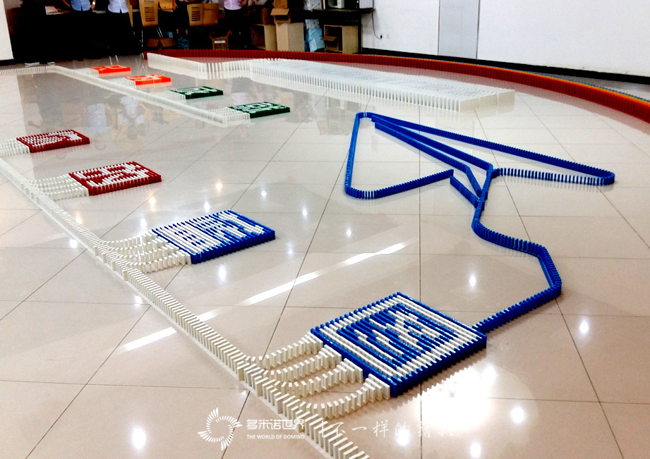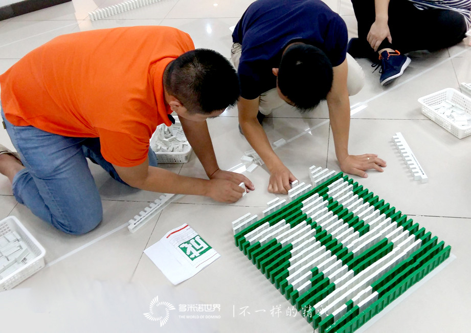 雖然學員們在過程中努力按照多米諾專業老師的要求,完成每一個環節,但還是不免出現失誤,而當所有骨牌即將碼放完成,最后收尾環節時,又有畫面意外倒地,令原本馬上就要品嘗到成功喜悅的學員們一下子又緊張起來,但大家并沒有氣餒,而是再一次“從頭再來”,學員們合作配合,最終一幅完整的多米諾作品展現在大家面前。