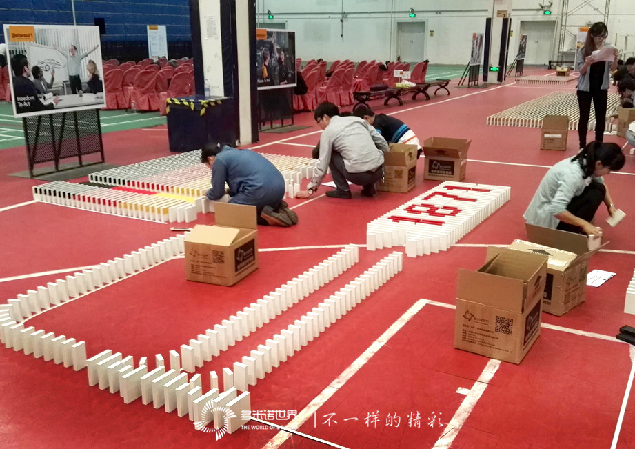 2016年5月18日,德國大陸公司的90余位精英,齊聚一堂,在多米諾世界團隊專業教練的帶領下,向多米諾骨牌發起挑戰。