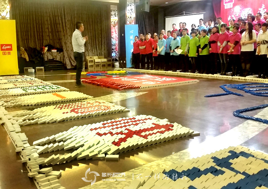 多米諾團隊大挑戰(zhàn)由濟南國美的108名精英共同完成,在經(jīng)歷了組建團隊、技術(shù)培訓(xùn)后,進入骨牌碼放階段。