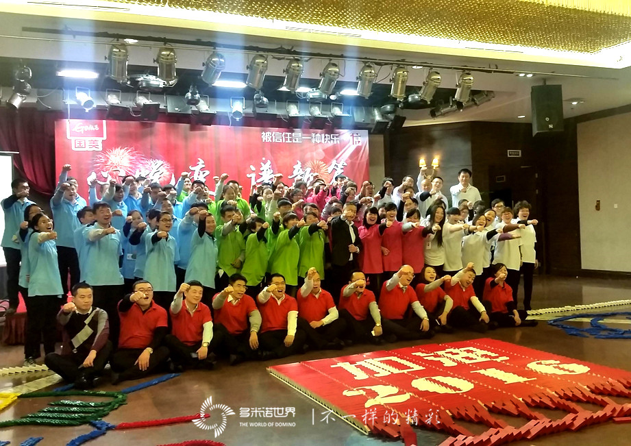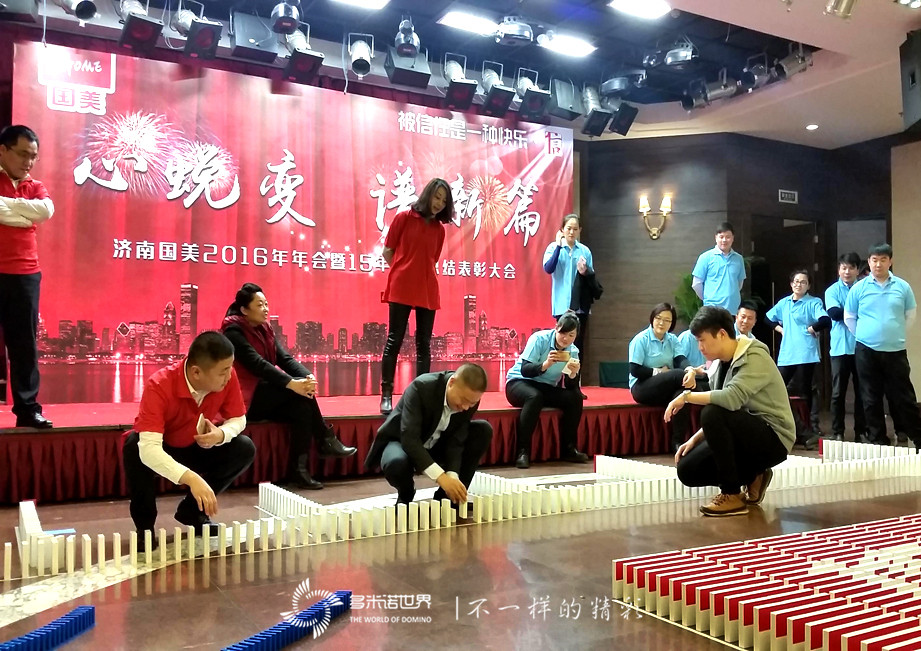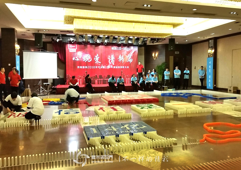 2016年1月27日,濟南國美誠邀多米諾世界團隊,在以2016年會上,組織了一場以“心蛻變、譜新篇”為主題的多米諾團隊大挑戰(zhàn)。
