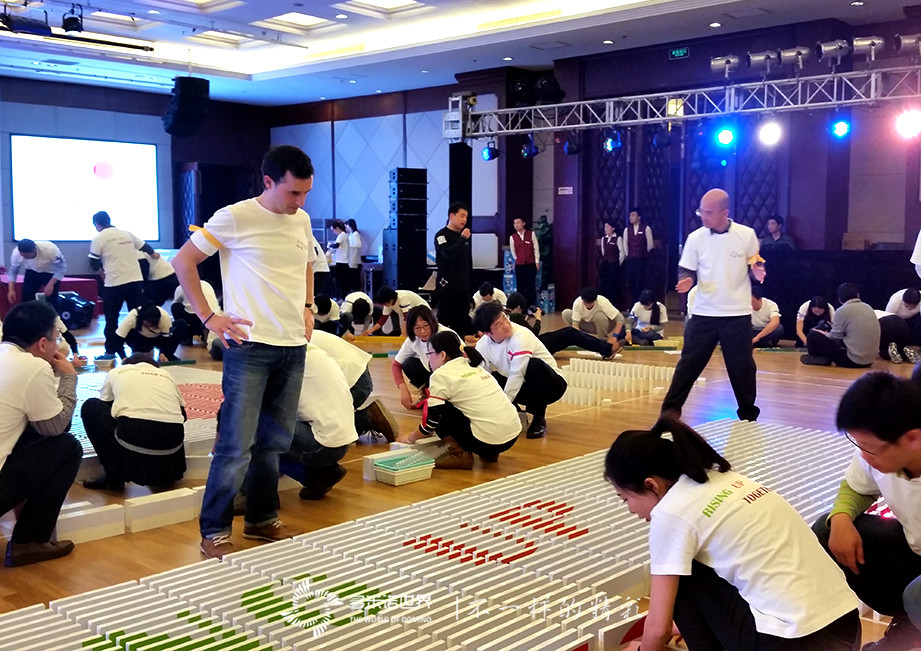 2015年1月30日來自北京、廣州、香港、臺灣的170于位得利滿的同仁共聚一堂,5個小時,六萬多枚骨牌,得利滿的各位工程師用精益求精的工作態(tài)度將熱情和專注投入到每一枚骨牌上。